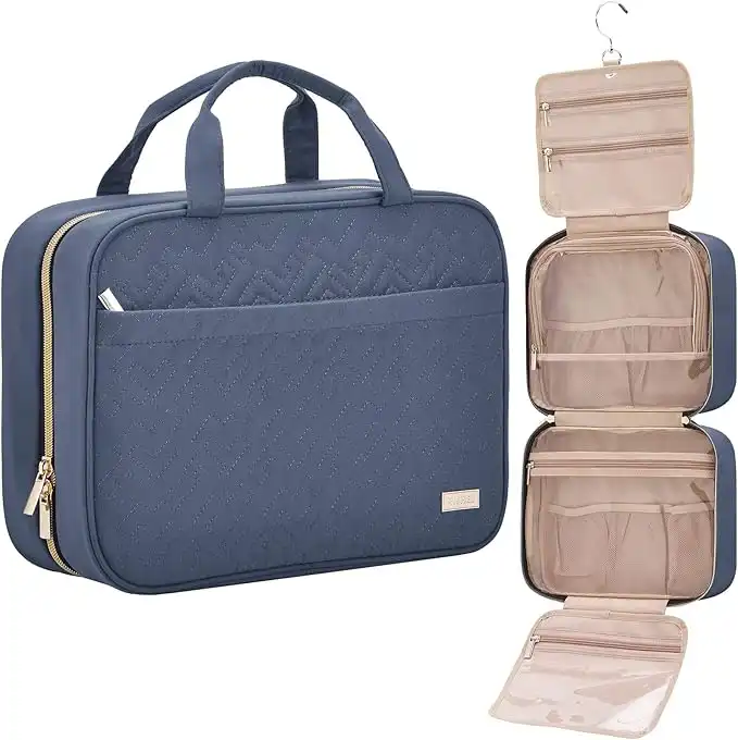 NISHEL Travel Toiletry Bag for women, Portable Hanging Organizer for Full-Sized Shampoo, Conditioner, Brushes Set, Travel-Size Accessories — Price History & Tracker | DeserTracker