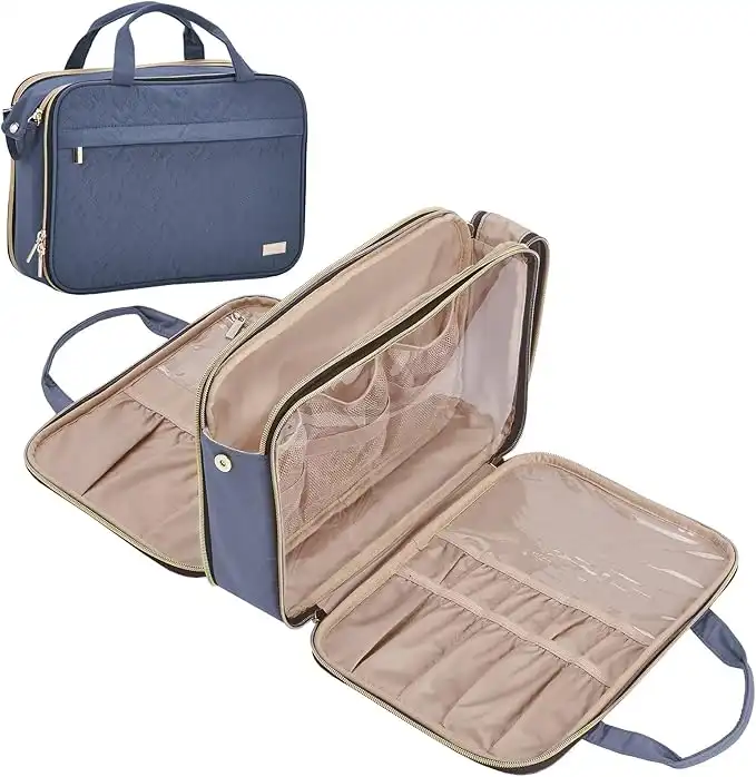 NISHEL Travel Toiletry Bag, Portable Makeup Organizer, Stand Up Cosmetic Case for Sized Toiletries