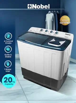 noon.comNobel 20kg Wash / 10kg Spin Capacity Twin-Tub Semi-Automatic Washing Machine | With Knob Control, Timer, Hinged Spin Lid & 480W Wash Power – NWM2010 Light Grey 20 kg 480 W NWM2010 Light Grey with Blue Lid