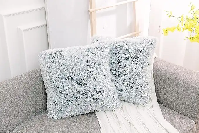 amazon.aeNordECO HOME Luxury Soft Faux Fur Fleece Cushion Cover Pillowcase Decorative Throw Pillows Covers, No Pillow Insert, 20" x 20" Inch, Light Grey, 2 Pack