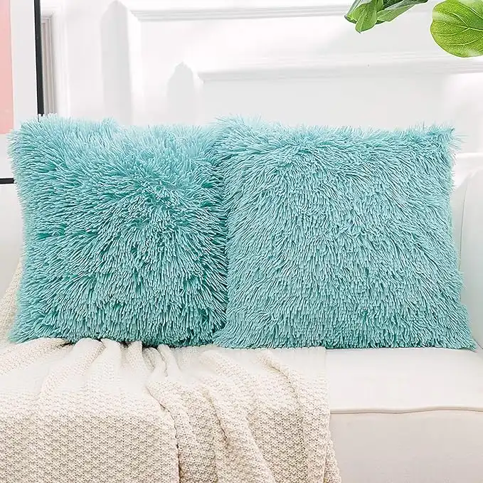 NordECO HOME Luxury Soft Faux Fur Fleece Cushion Cover Pillowcase Decorative Throw Pillows Covers, No Pillow Insert, 18" x 18" Inch, Teal Green, 2 Pack