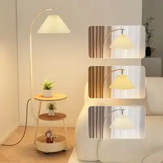 Nordic Curved Floor Lamp,Standing lamp With 3-Layer Side Table and Storage Drawer, Multi-functional Living Room and Bedroom Desk Lamp, Suitable for Reading and Decoration