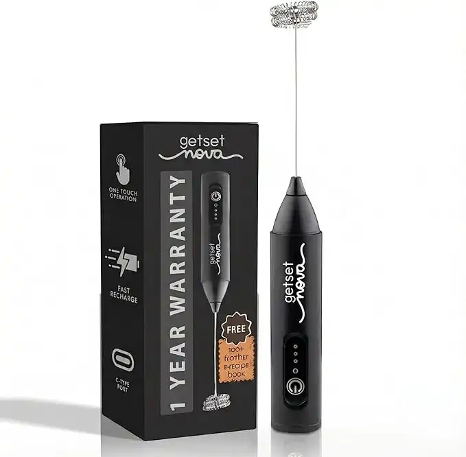 Nova Rechargeable Milk Frother & Coffee Whisker with Dual Spring Tech Free Coffee Frothing Recipe Book (Frother)