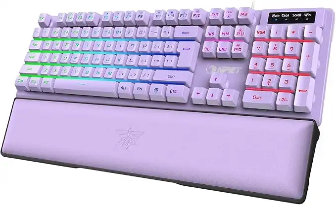 amazon.aeNPET K10 Gaming Keyboard USB Wired Floating Keyboard, Quiet Ergonomic Water-Resistant Mechanical Feeling Keyboard, Ultra-Slim Rainbow LED Backlit Keyboard for Desktop, Computer, PC