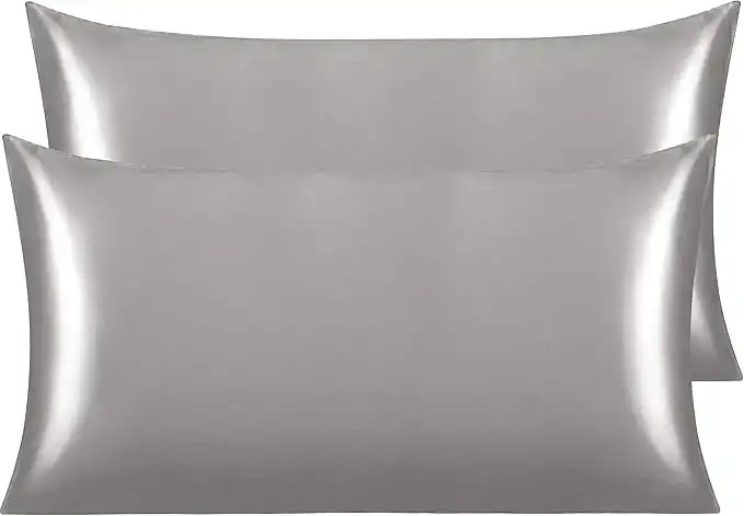 NTBAY 2 Pack Satin King Pillowcases for Hair and Skin, Luxurious and Silky Pillow Cases with Envelope Closure, 20x40 Inches, Grey