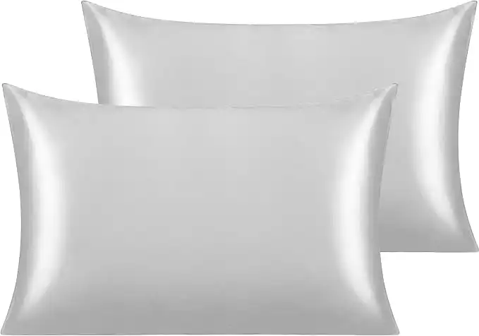 NTBAY 2 Pack Satin Queen Pillowcases for Hair and Skin, Luxurious and Silky Pillow Cases with Envelope Closure, 20x30 Inches, Silver Grey