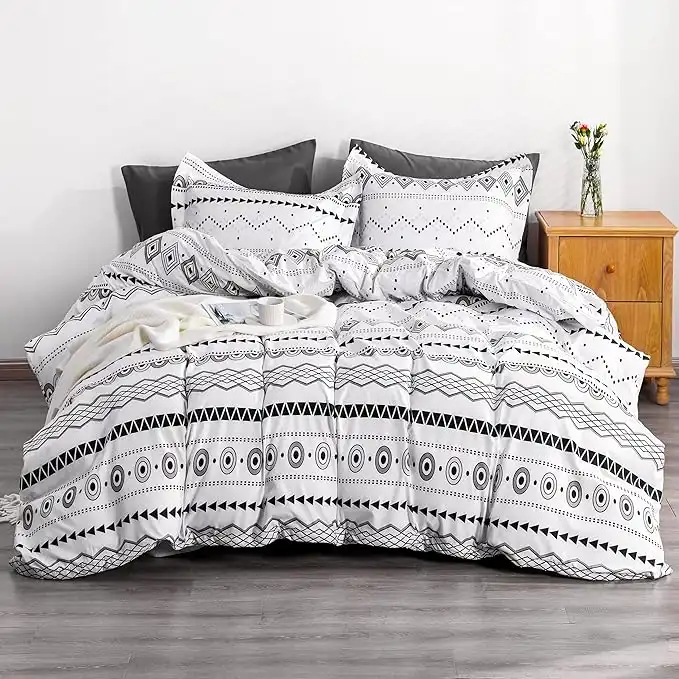 NTBAY 2 Pieces 100% Brushed Microfiber Striped Duvet Cover Set for Kids, Super Soft Black and White Printed Reversible Design Zipper Comforter Cover with Ties and Pillow Sham (Twin/Twin XL, Bohemia)