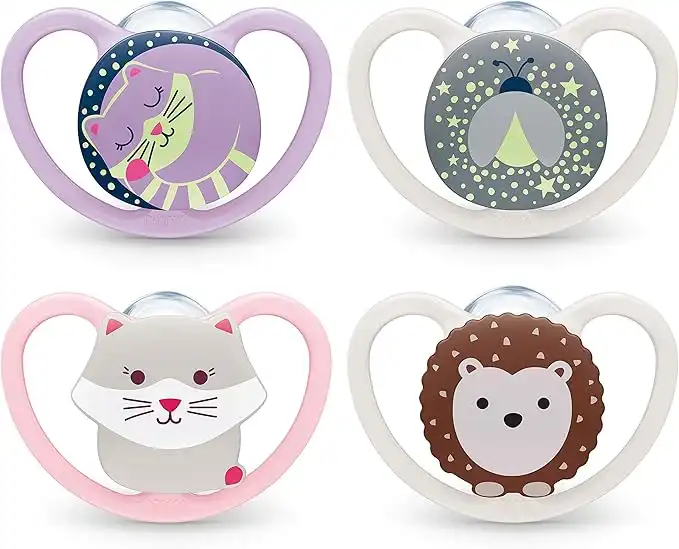 NUK Space Pacifier Set of 4 | 2x Space & 2x Space Night with light effect | silicone | 0-6 months | with extra ventilation and orthodontic shape | cat and hedgehog. — Price History & Tracker | DeserTracker