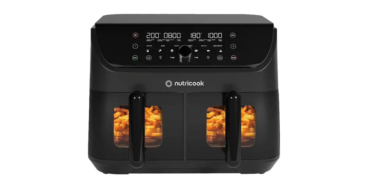 amazon.aeNutricook 12 in 1 Dual Basket Air Fryer 8.5 L with clear window & Internal Light |Sync Function & Dual Cook Mode | Independently Controlled baskets | Faster Cooking - 2400 watts,AFD185V,2 Yrs Warranty
