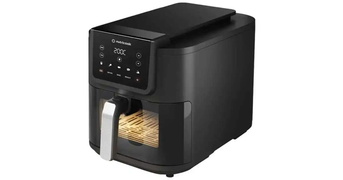 amazon.aeNutricook Air Fryer Slim XL,7.6L, 2.4KG, Extra-Large Basket, Space-Saving Slim Design, Air Fry, Bake, Reheat, with 5 Presets, Clear Window & Internal Light, AFS200, Black, 1700 Watts, 2 Yr Warranty