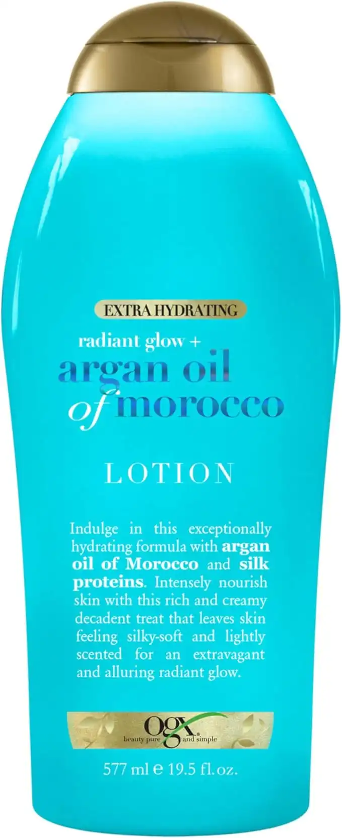 amazon.aeOGX Radiant Glow + Argan Oil of Morocco Extra Hydrating Body Lotion for Dry Skin, Nourishing Creamy Body & Hand Cream for Silky Soft Skin, Paraben-Free, Sulfated-Surfactants Free, 19.5 fl oz