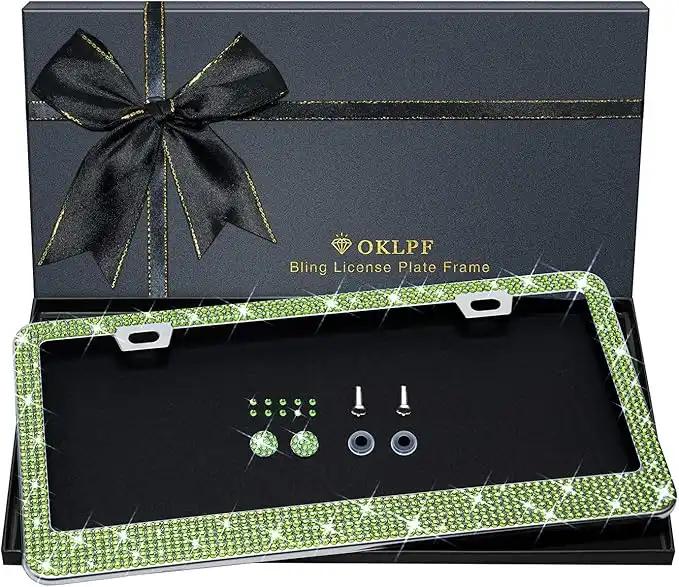amazon.aeOKLPF Bling License Plate Frame for Women, 1PCS Sparkly License Plate Frames| Over 1200 pcs 14 Facets Bedazzled Clear Glass Diamond Rhinestone Crystals w/Free Glitter Diamond Box (Olive Green)