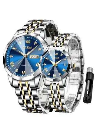 OLEVS His and Her Couple Watches Business Men Women Couple Set Pair Watch Matching Romantic Quartz Watch Stainless Steel Waterproof Date Men's Watches Women Watches Wrist Watch