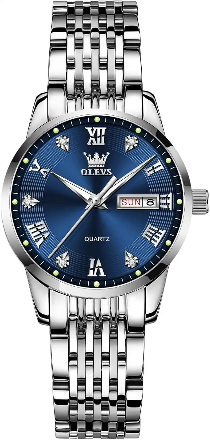 OLEVS Women's Watch, Classic Waterproof Stainless Steel Day Date Small Wrist Watch Women, Elegant Round Dial Analogue Quartz Luminous Women's Watch