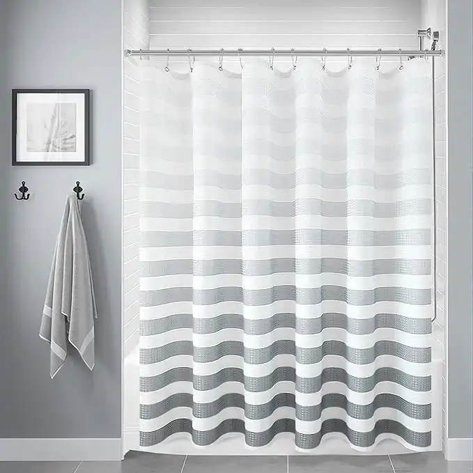 amazon.aeOmbre Fabric Shower Curtain, Grey Stripe Polyester Fabric Shower Curtains with 12 Hooks, Decorative Shower Curtain Set for Bathroom Hotel Quality, Waterproof Shower Curtain Liner, 72 X 72 Inches