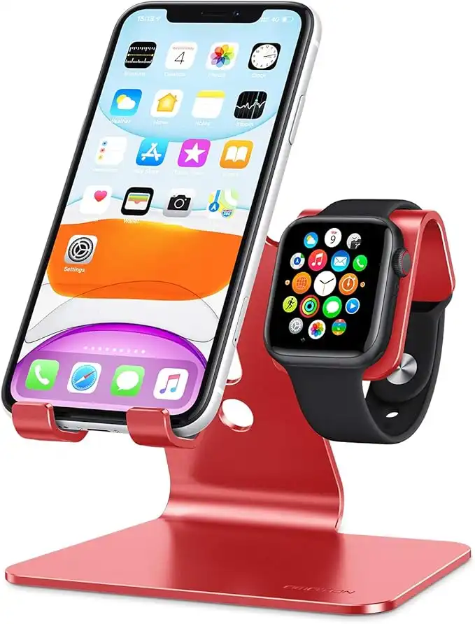 OMOTON Stand for Apple Watch - 2 in 1 Universal Desktop Stand Holder for iPhone 14 13 12 11 All Series and Apple Watch Series 8/SE2/7/6/SE/5/4/3/2 (Both 38mm/40mm/41mm/42mm/44mm/45mm) (Red) — Price History & Tracker | DeserTracker