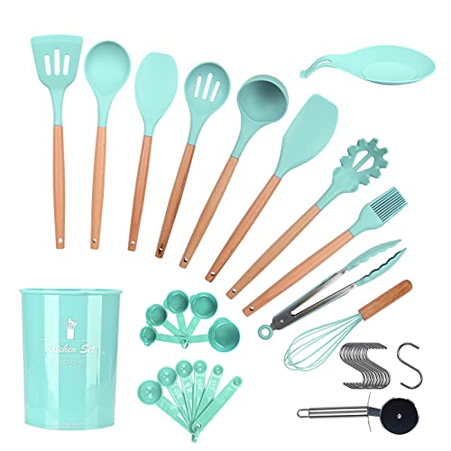 amazon.aeONATISMAGIN Kitchen Utensils Set, 35pcs Non-Stick Silicone Cooking Utensils Set, Heat Resistance Cooking Tools, Kitchen Tools Gadgets Accessories, Spoons Spatula Set with Wooden Handle (Dark Green)