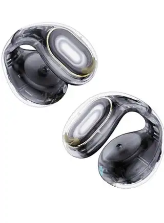 Open-Ear Earbuds, Clip-On Headphones, Lightweight Comfort, Stable Fit, Firm-Shell Design, Attachable Ear Grips, Big Drivers for Clear Audio, 30H Play, IPX4 Water-Resistant Black