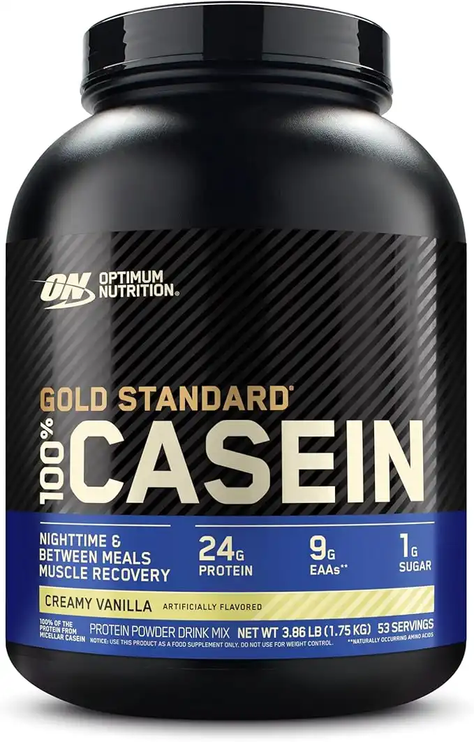 Optimum Nutrition (ON) Gold Standard 100% Micellar Casein Protein Powder, 24 Grams of Protein, Slow Digesting, Helps Keep You Full, Overnight Muscle Recovery - Creamy Vanilla, 3.86 Lbs, 53 Servings