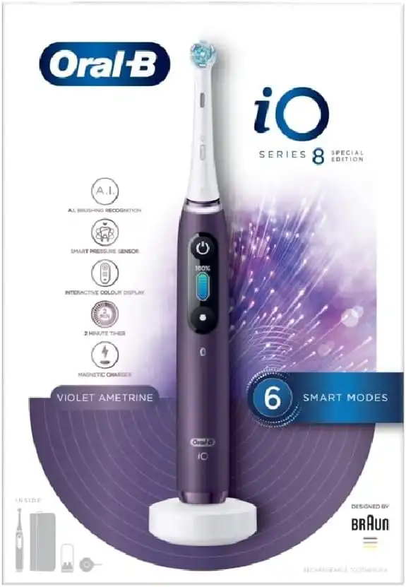 Oral-B iO8 Electric Toothbrush For Adults, App Connected Handle, 1 Ultimate Clean Toothbrush Head & Magnetic Pouch, 6 Modes, Teeth Whitening, 2 Pin UK Plug