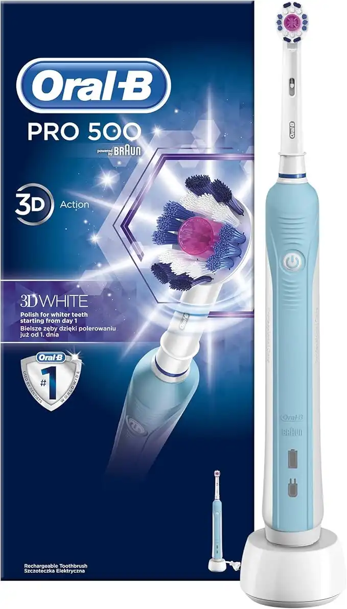 Oral-B PRO 500 3D White Rechargeable Electric Toothbrush (with UAE 3 pin plug)