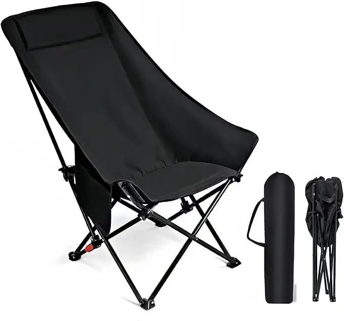 ORCHID M® Portable Adjustable Camping Chair for Adults,Compact Folding Moon Chair with Carry Bag 600D Oxford Fabric Carbon Steel Frame for Outside Patio Picnic Fishing Hiking(Black)
