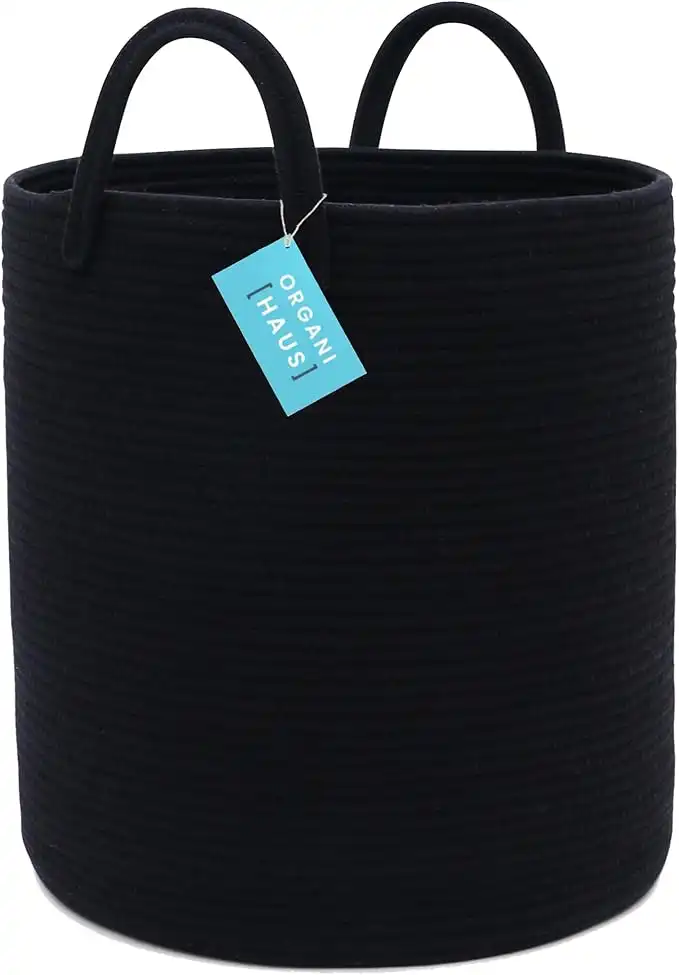 OrganiHaus Black Tall Laundry Basket 15x18, Woven Storage Basket for Living Room, Extra Large Boho Blanket Holder, Soft Pillow Hamper