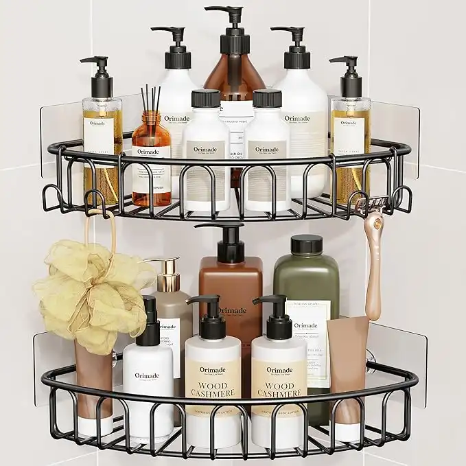 Orimade Corner Shower Caddy Stainless Steel with Hooks Wall Mounted Bathroom Shelf Storage Organizer Adhesive No Drilling 2 Pack, Black Only for 90-Degree Corner — Price History & Tracker | DeserTracker