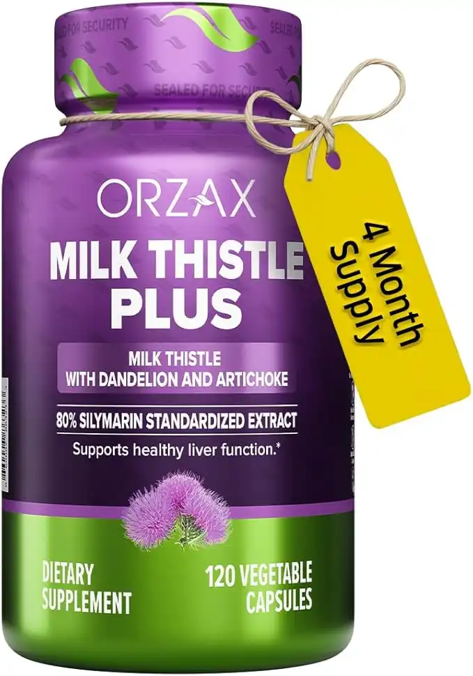 amazon.aeORZAX Milk Thistle 250 mg - Herbal Supplement with 80% Silymarin Supplement, Dandelion, Artichoke Extract - Supports Liver Health - Halal and Dairy-Free - 120 Vegetable Capsules