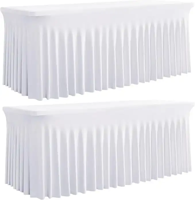 Outpain White Spandex Table Clothes for 6 Foot Rectangle Tables-2Pack 6FT Spandex Fitted Table Cover, Wrinkle Free Tablecloths with Skirt for Parties, Wedding, Birthday, Banquet, Festival