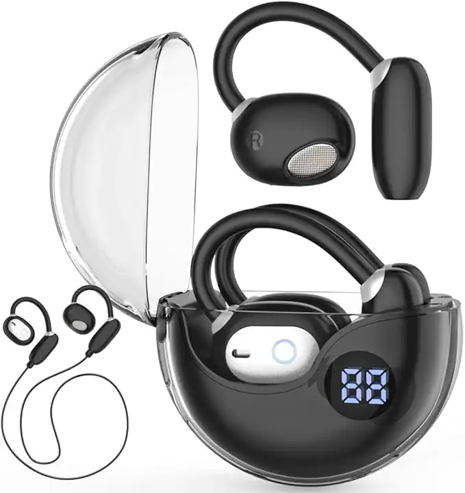 Oxsaytee Open Ear Headphones Wireless Earphones with Earhooks and Neck Lanyard Bluetooth 5.49 Wireless Headphones Smart Digital Display OWS Hanging Earphones Sport Earbuds for Workouts Running, Black — Price History & Tracker | DeserTracker
