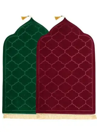 noon.comPack of 2 Prayer Mats 70x110cm Anti-Slip Velvet Top Islamic Prayer Rugs for Gifting New Dome Design Thick Padded Sajadah Prayer Mat for Couples Men Women Eid Gift Ramadan Prayer Mat Maroon/Green