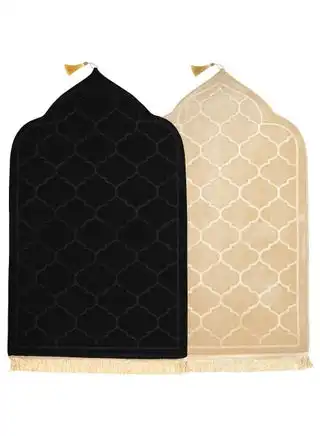 Pack of 2 Prayer Mats 70x110cm Anti-Slip Velvet Top Islamic Prayer Rugs for Gifting New Dome Design Thick Padded Sajadah Prayer Mat for Couples Men Women Eid Gift Ramadan Prayer Mat Black/Beige