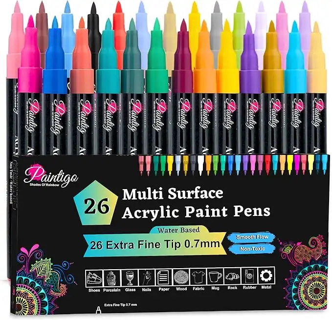amazon.aePaintigo Acrylic Paint Pens for Rock Painting, Wood, Ceramic, Glass, Fabric, Mugs, Canvas, DIY Craft Supplies - Acrylic Paint Markers Set of 26 Colors, Water Based, Waterproof, Extra Fine Tip 0.7mm
