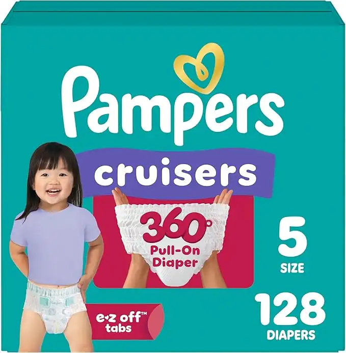 Pampers Diapers Size 5, 128 Count - Pull On Cruisers 360° Fit Disposable Baby Diapers with Stretchy Waistband, (Packaging & Prints May Vary) — Price History & Tracker | DeserTracker