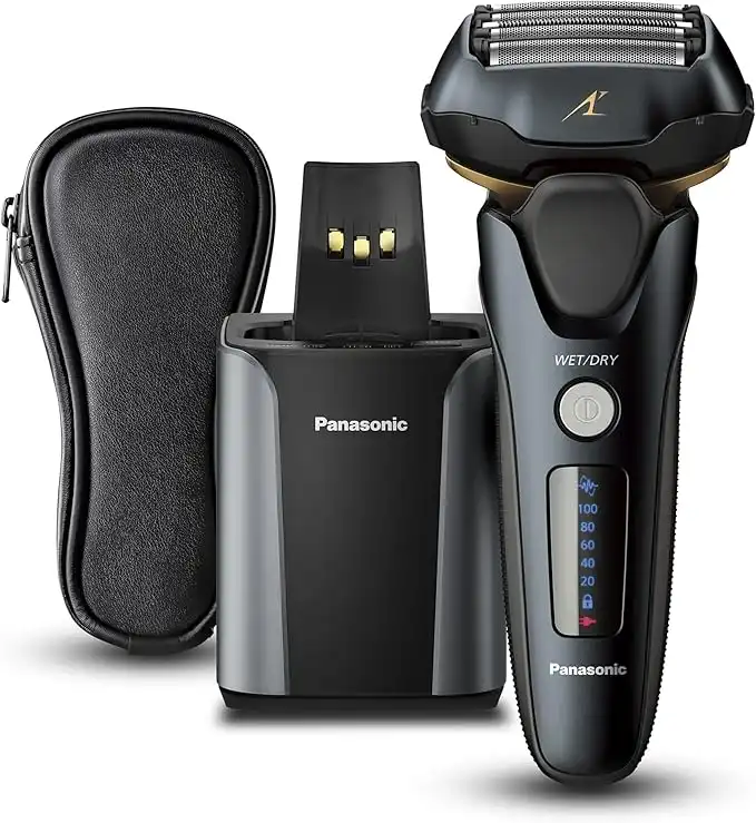Panasonic ES-LV97 5-Blade Wet & Dry Electric Shaver for Men, Rechargeable, Responsive Beard Sensor, Multi-Flex 16D Head, Auto Cleaning, Charging Stand, Gift for men (2 pin UK plug)