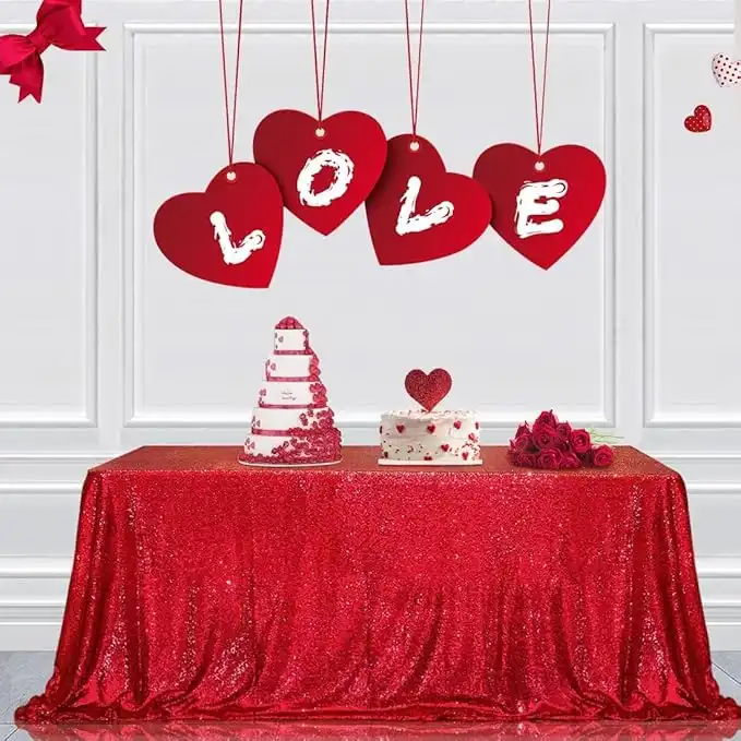 amazon.aePartyDelight Sequin Tablecloth, Wedding, Sweetheart, Christmas Tree, Rectangular, 48"x72", Dark Red