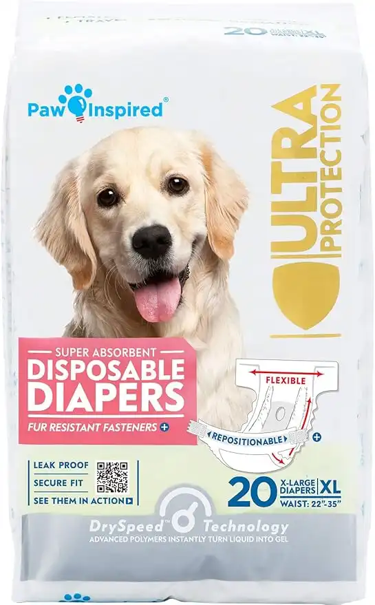 Paw Inspired X-Large Disposable Dog Diapers (20 Count) - Ultra Protection for Female Dogs in Heat, Incontinence, or Excitable Urination — Price History & Tracker | DeserTracker