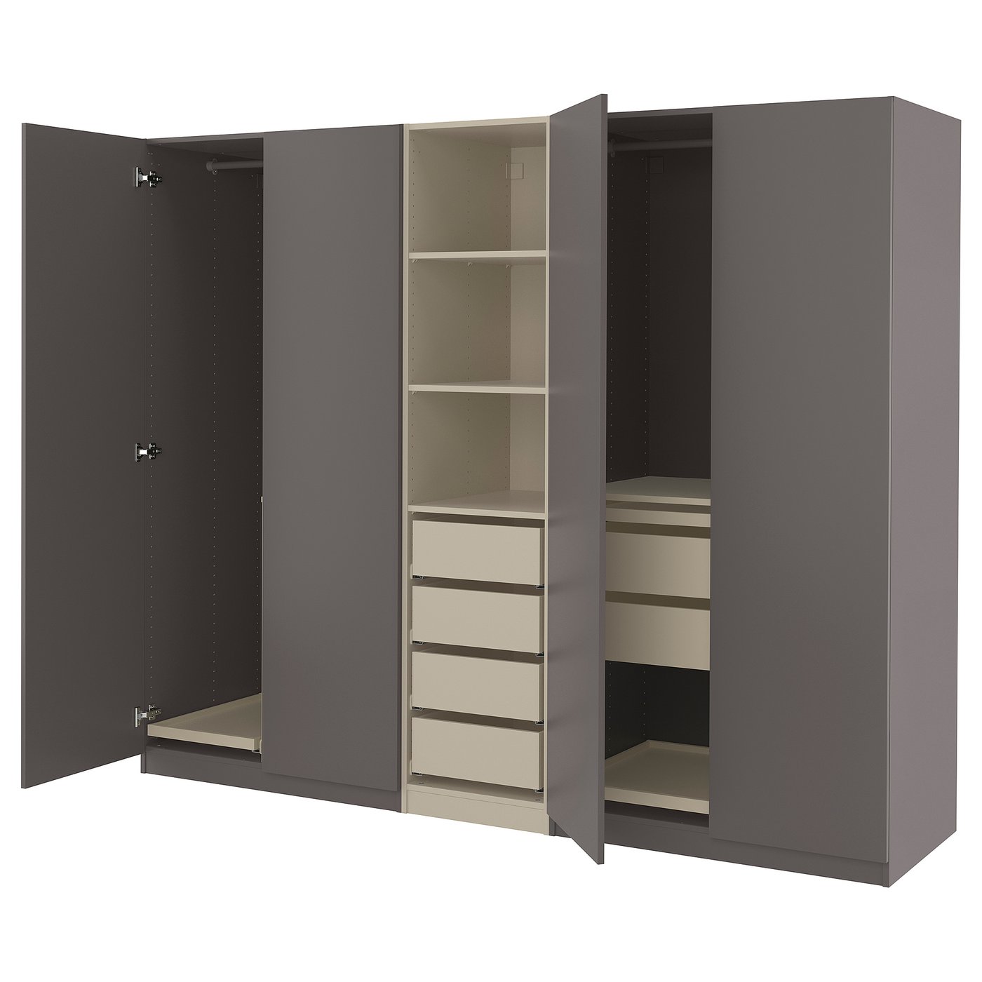 PAX / FORSAND Wardrobe combination - dark grey grey-beige/dark grey 250x60x201 cm