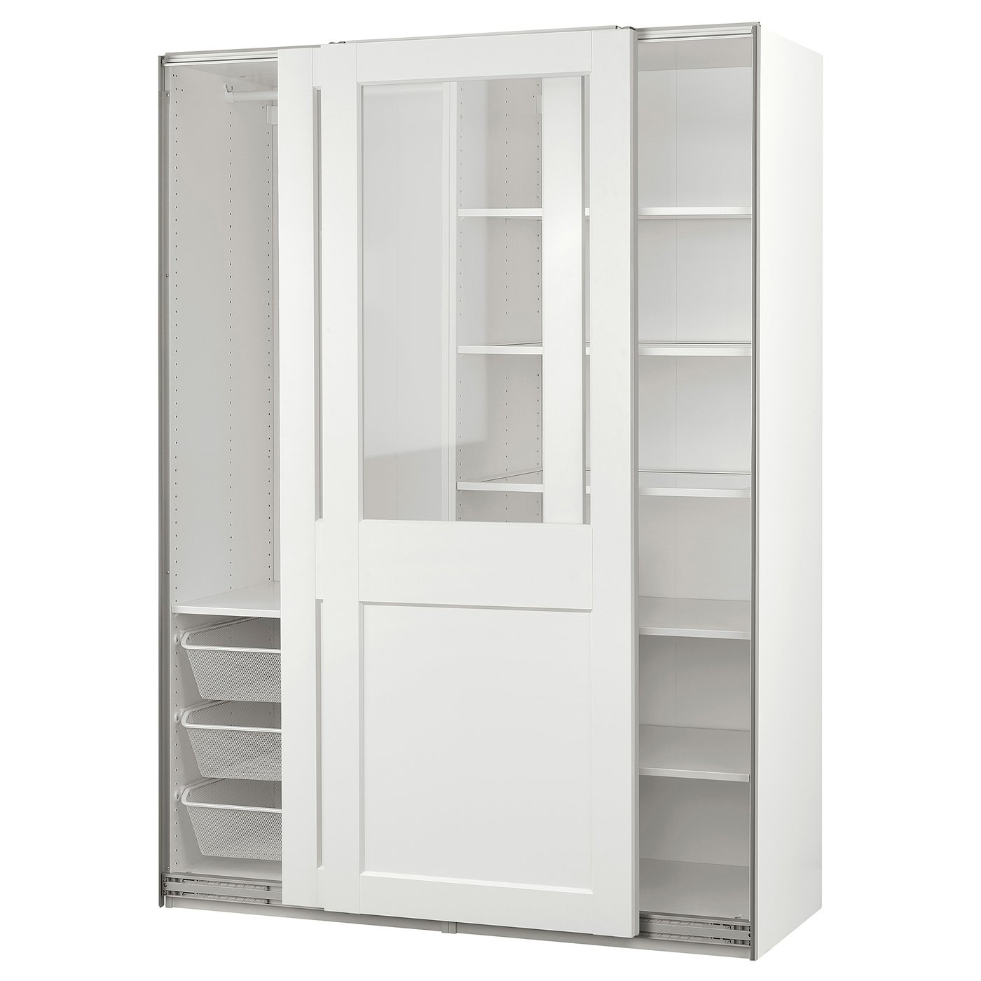 PAX / GRIMO Wardrobe combination - white/clear glass white 150x66x201 cm