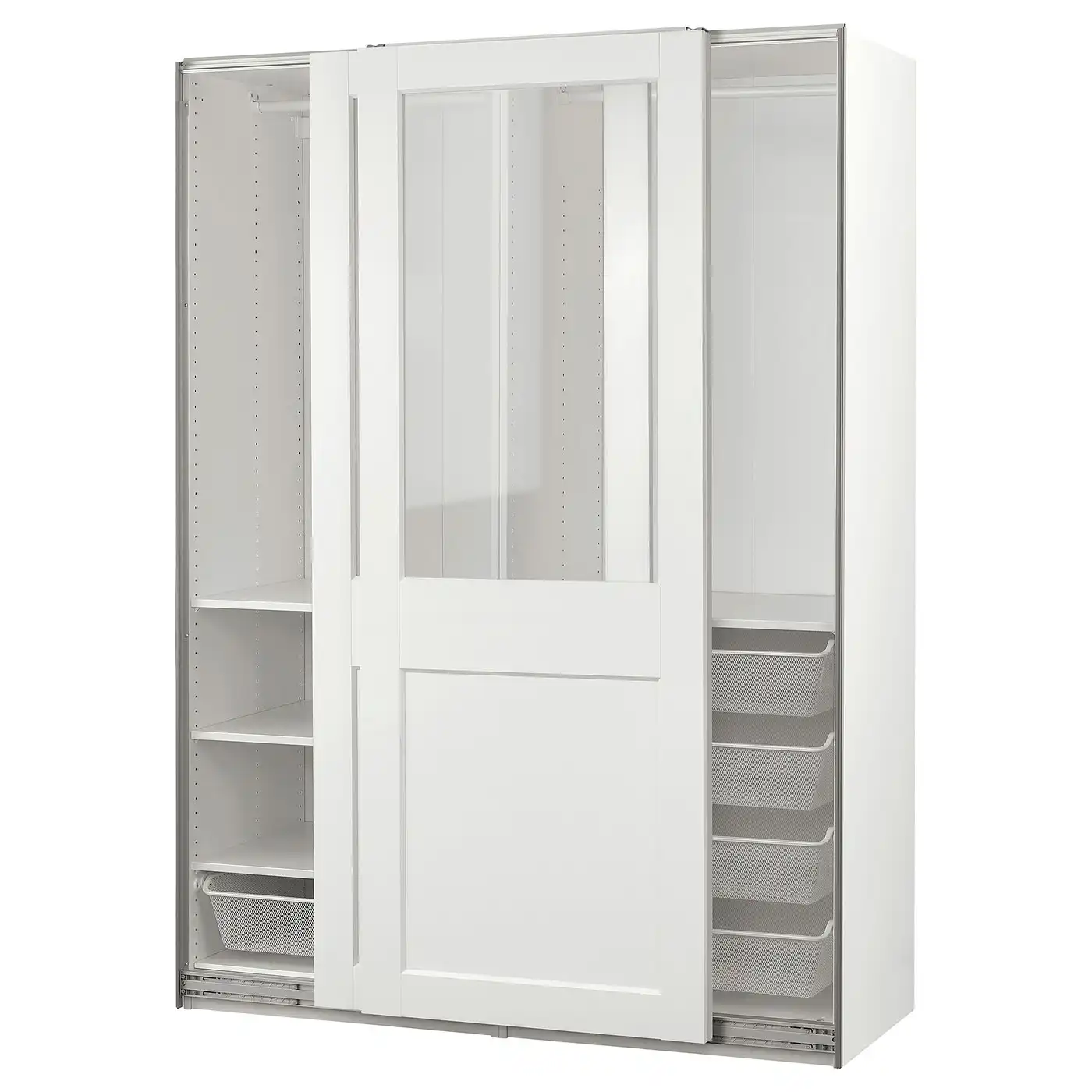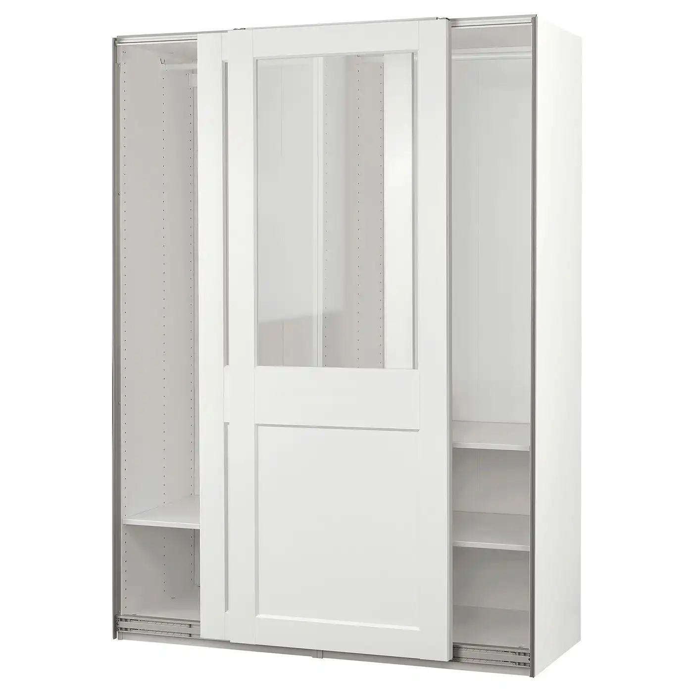 PAX / GRIMO Wardrobe with sliding doors - white/clear glass white 150x66x201 cm