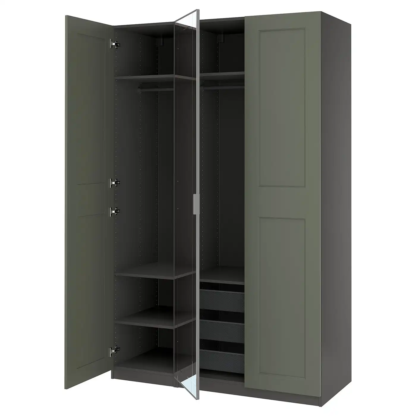 PAX / KAMMARTORP/GRIMO Wardrobe combination - dark grey mirror glass/grey grey-green 150x60x236 cm — Price History & Tracker | DeserTracker