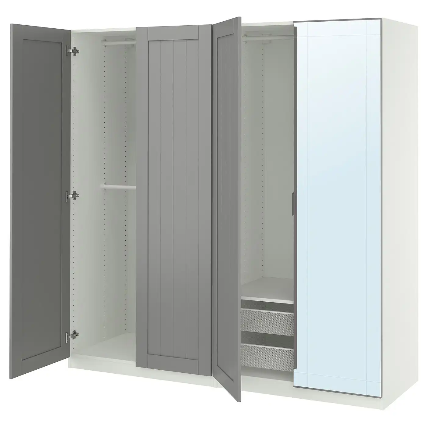 Compare all IKEA PAX/KAMMARTORP/GULLABERG Wardrobe combination 200x60x201 cm white/mirror glass/grey white prices