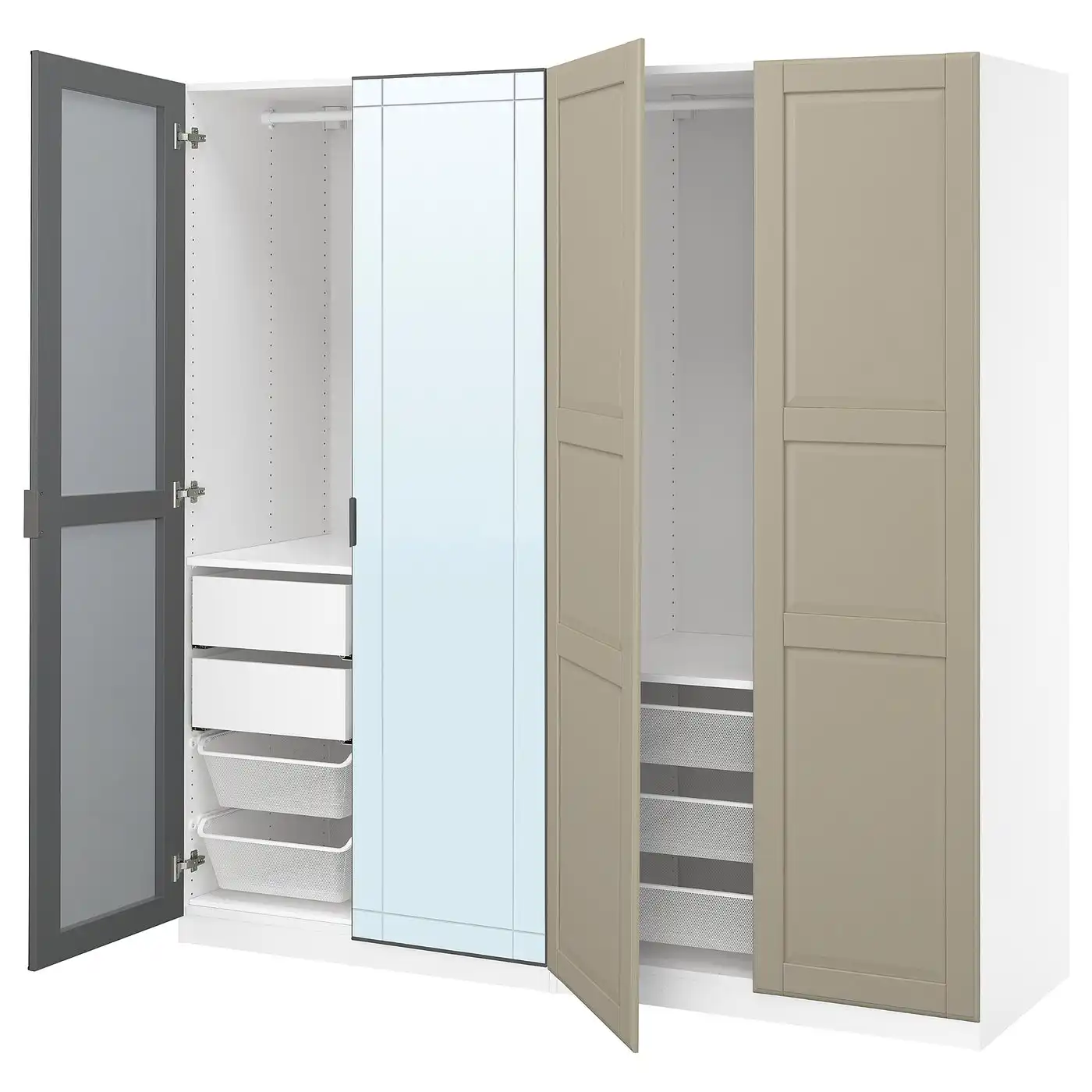 PAX / KAMMARTORP/TYSSEDAL Wardrobe combination - white mirror glass/grey grey-beige 200x66x201 cm — Price History & Tracker | DeserTracker