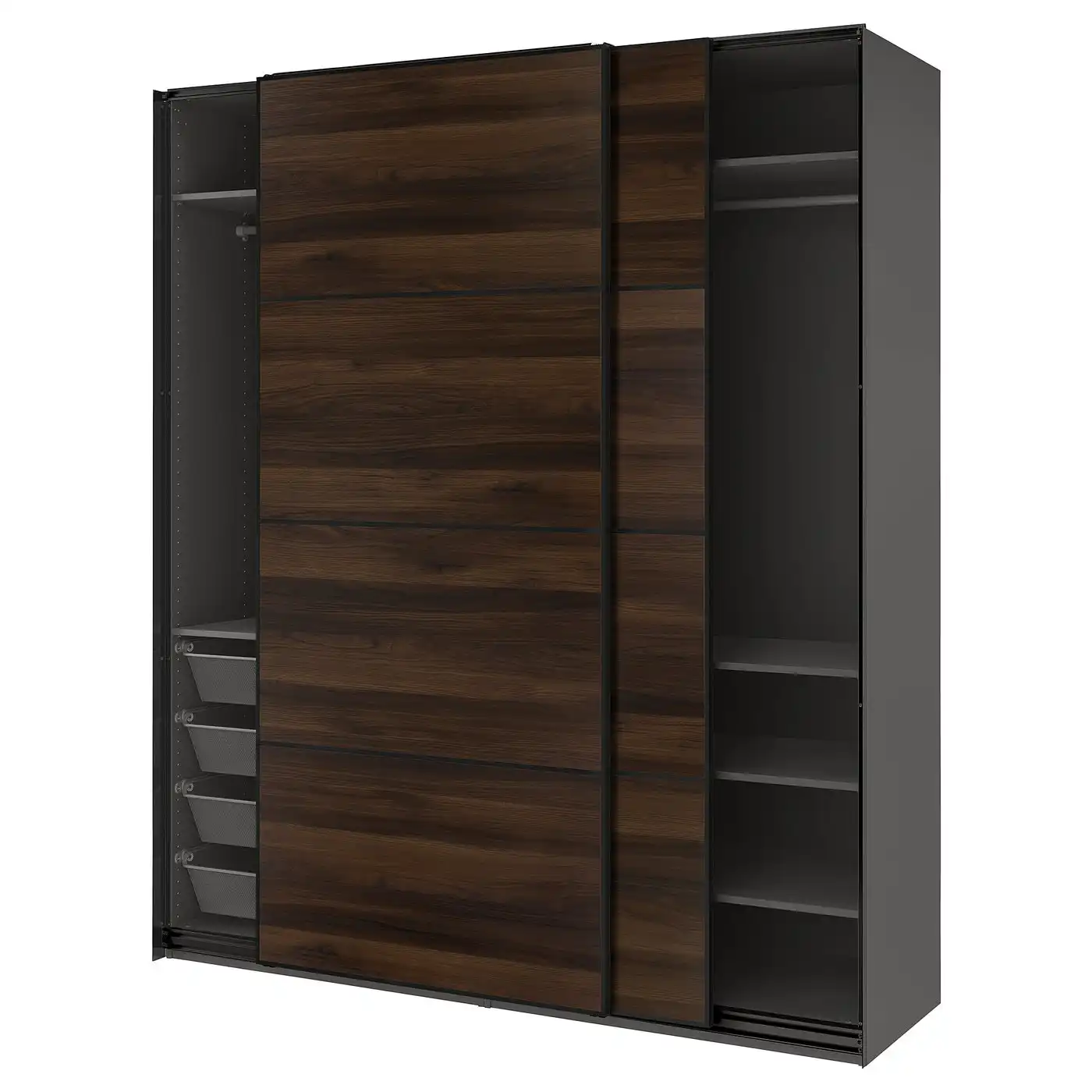 PAX / MEHAMN Wardrobe with sliding doors - dark grey black/double sided dark brown oak effect 200x66x236 cm