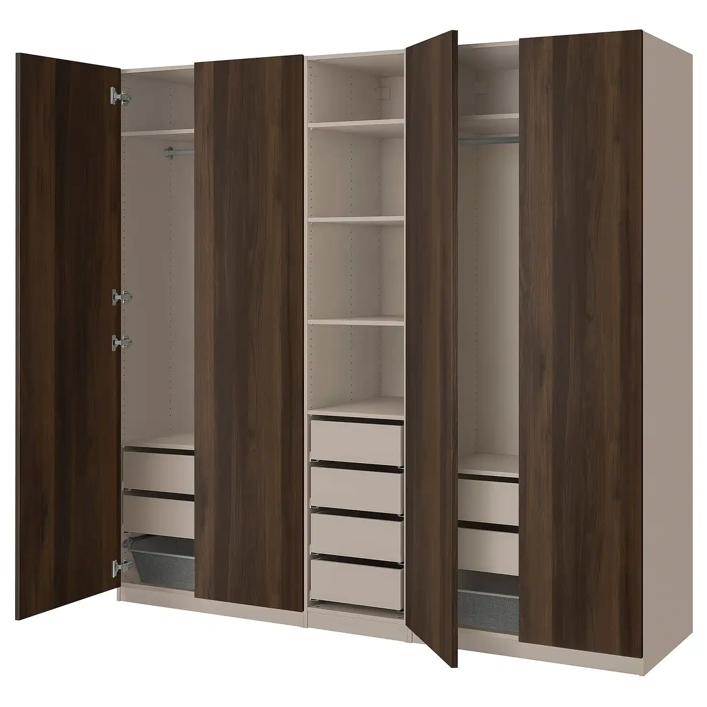 PAX / STORKLINTA Wardrobe combination - grey-beige/oak effect 250x58x236 cm