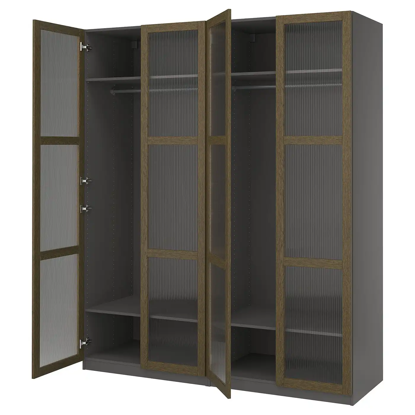 PAX / TONSTAD Wardrobe combination - dark grey brown/stained oak veneer glass 200x60x236 cm