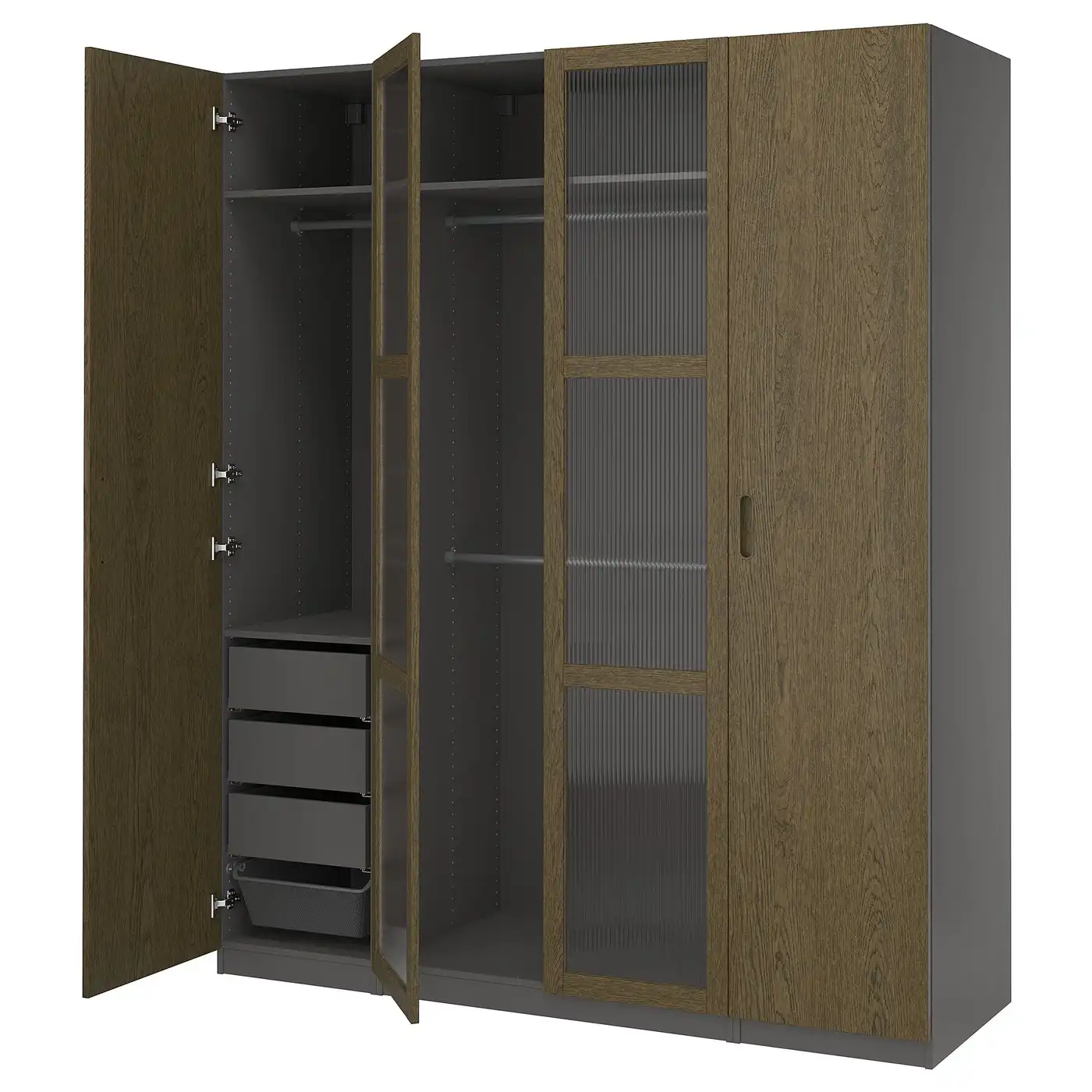 PAX / TONSTAD Wardrobe combination - dark grey/brown stained oak veneer 200x60x236 cm
