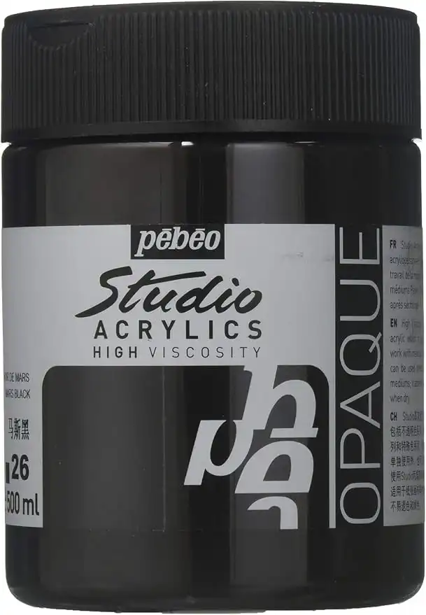 Pebeo Studio 500ml Acrylic Paint, Mars Black, 16.9 Fl Oz (Pack of 1), 17