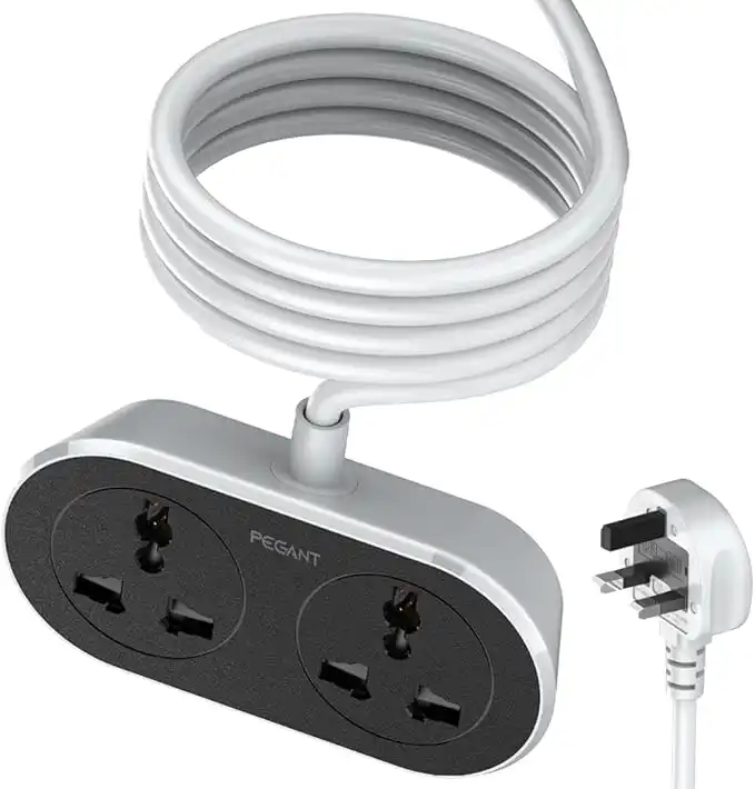 PEGANT 2 Way 10 Meters, 2 Universal Outlets Power Extension Cord, 10M Dual Socket Cable Extender, 2500W 2 Plugs Electric Wire for Desk, Table, Floor, Office, Car (2-way 10M)